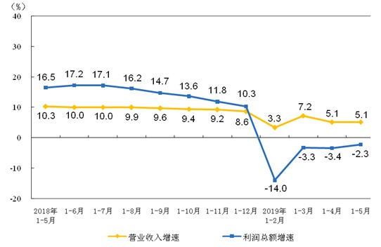5月份,規(guī)模以上工業(yè)企業(yè)實(shí)現(xiàn)利潤總額5655.6億元,同比增長(zhǎng)1.1%,4月份為同比下降3.7%。
